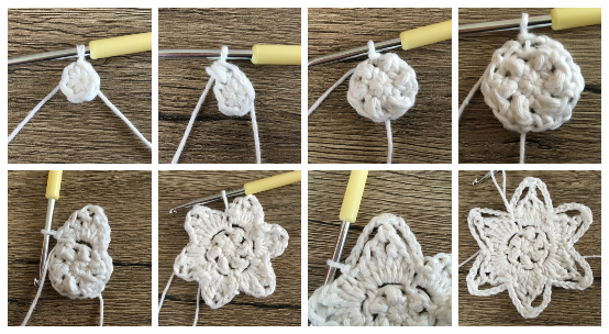 Der Stern wird in Runden gehäkelt, dabei wird die Arbeit nicht gewendet.