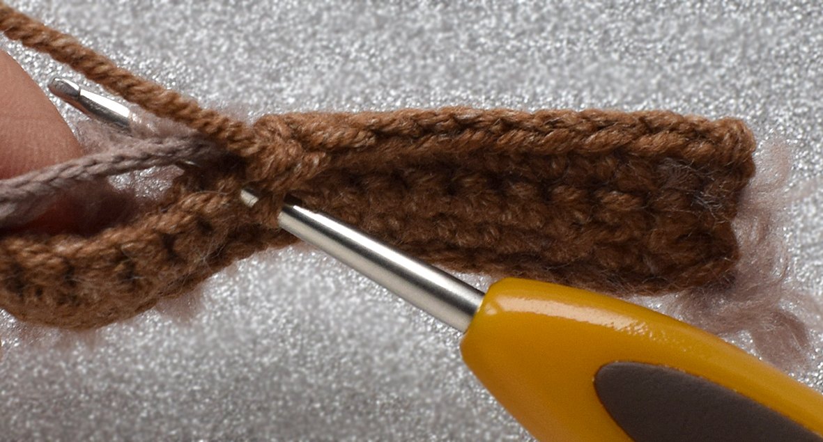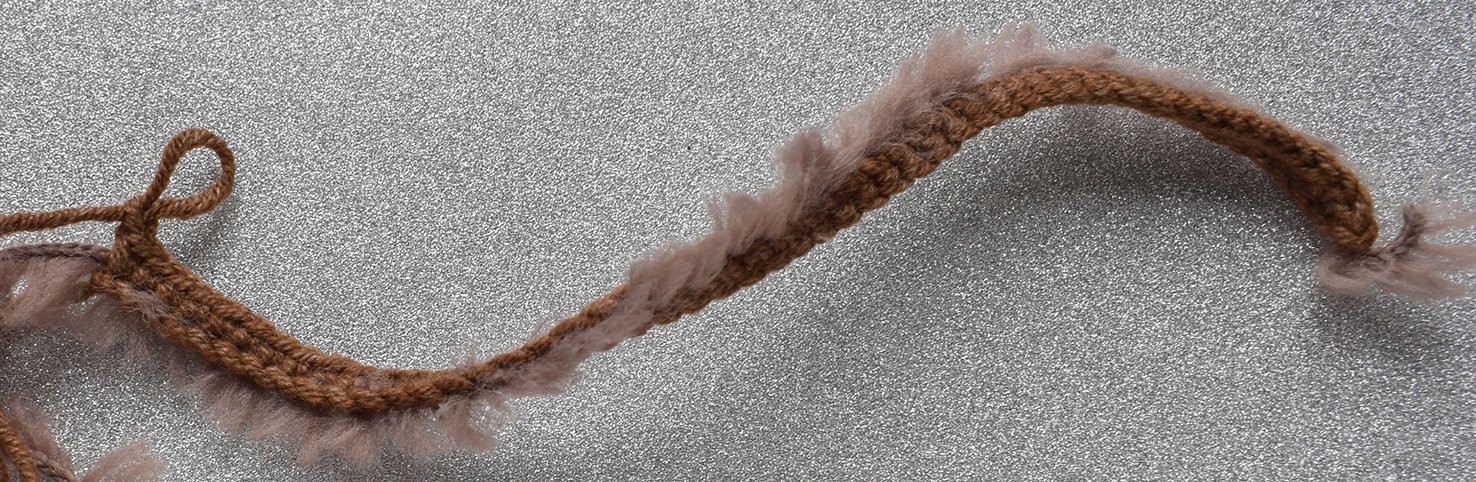 So häkeln wir bis zum Ende weiter und bekommen eine Seite glatt und die andere Seite flauschig.