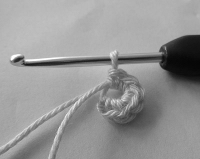 • in den Fadenring werden 6 feste Maschen gehäkelt