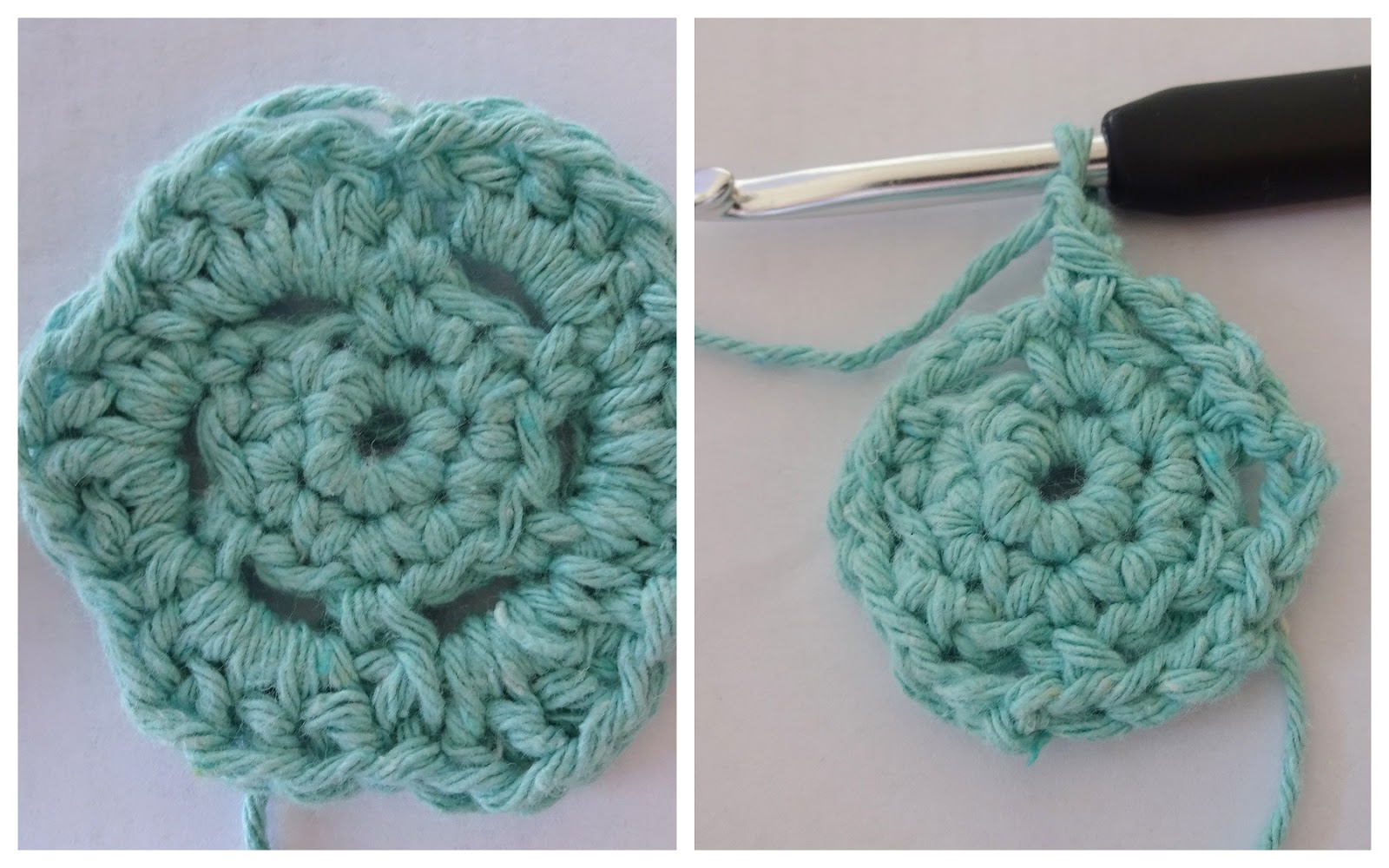 Gehäkelt wird wieder ausschließlich mit festen Maschen und in Spiralrunden!