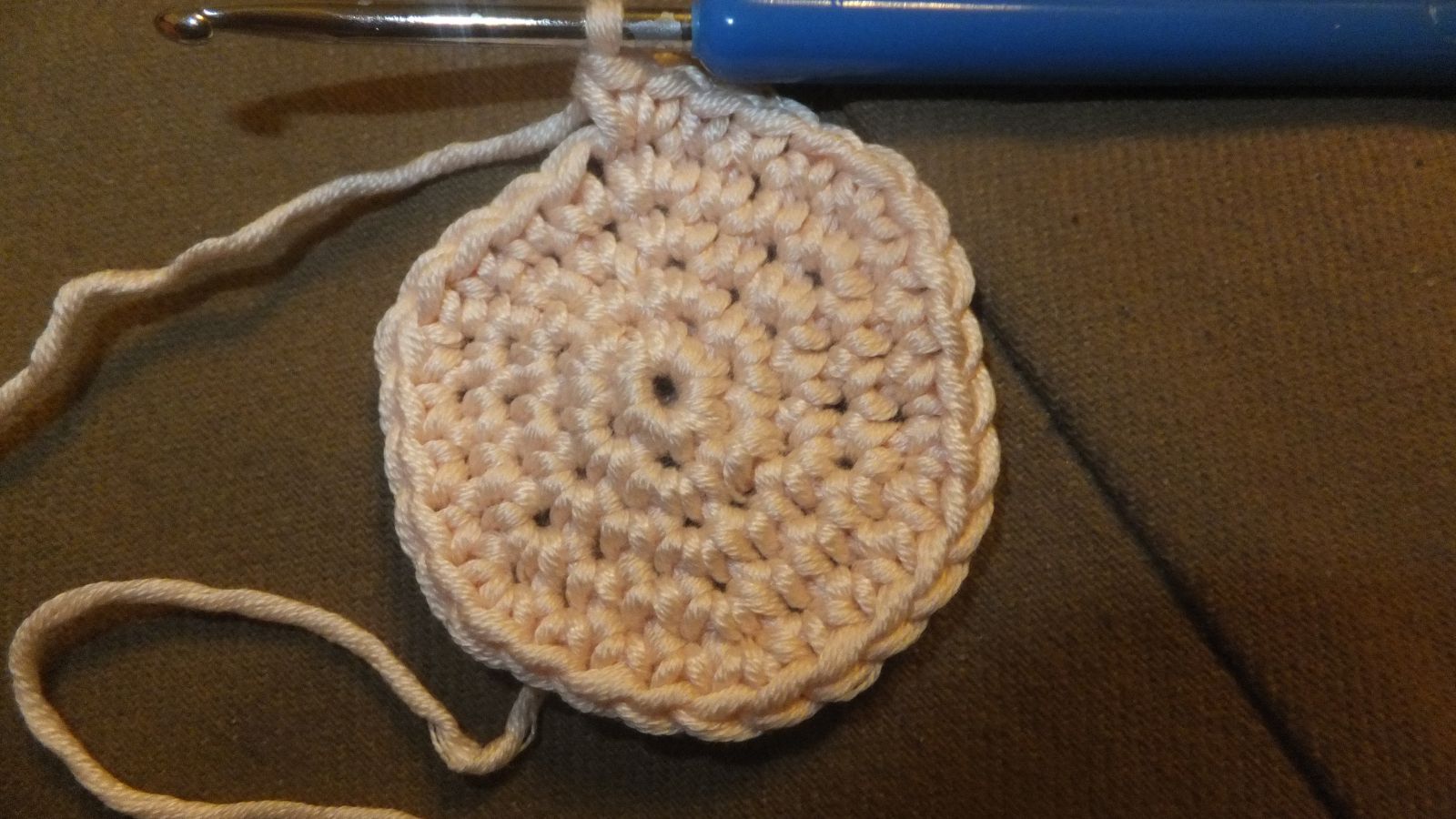 Ich habe nun beschlossen, das mein Kreis groß genug ist und Häkel nun in die Länge