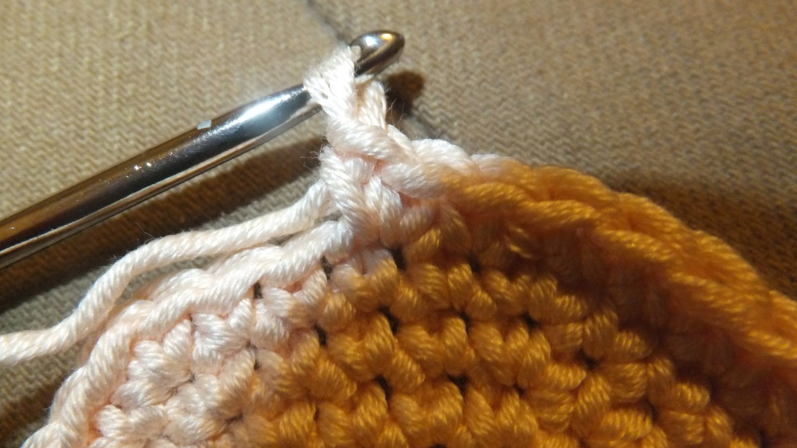 Dann wird jede Masche verdoppelt, also in jede FM 2 FM häkeln
