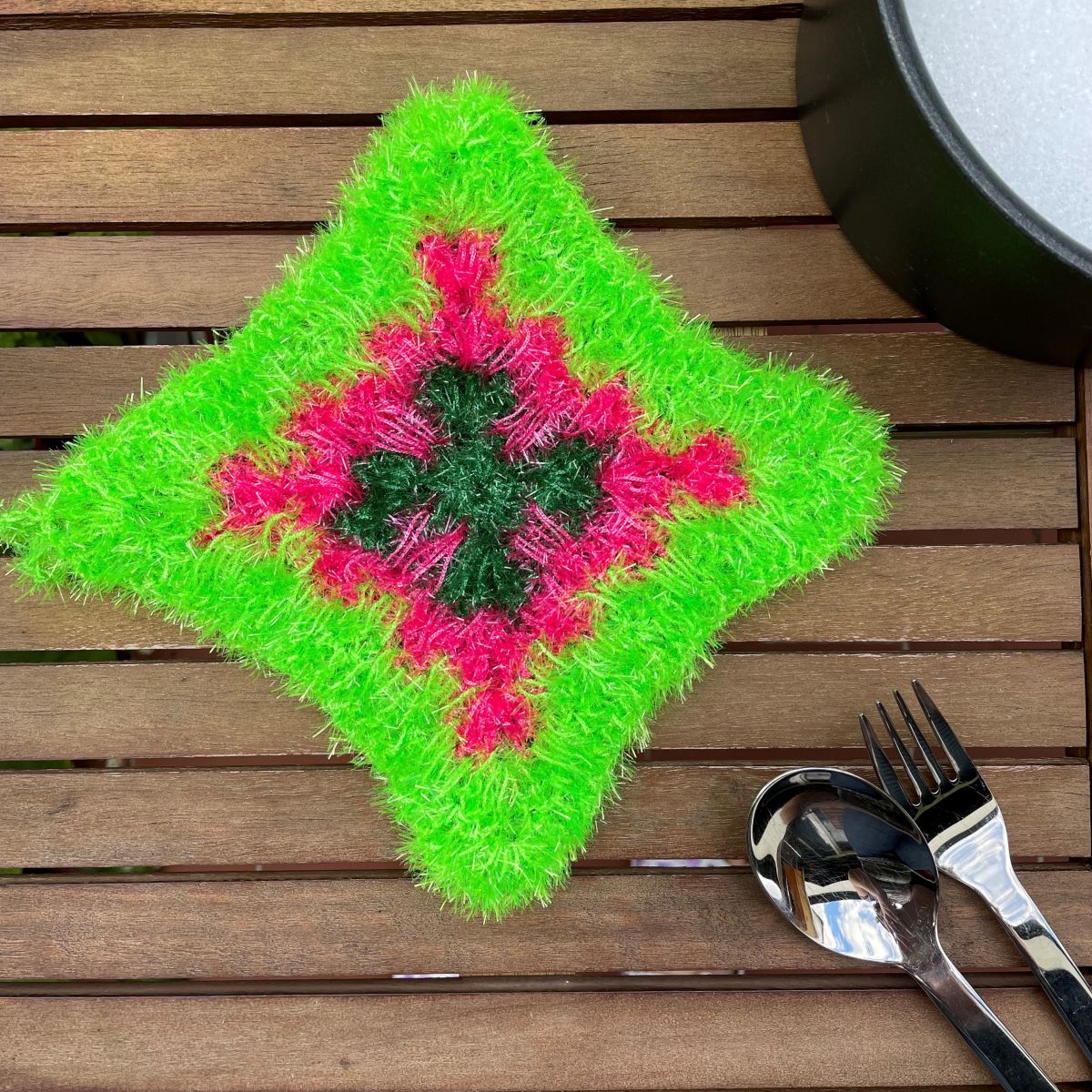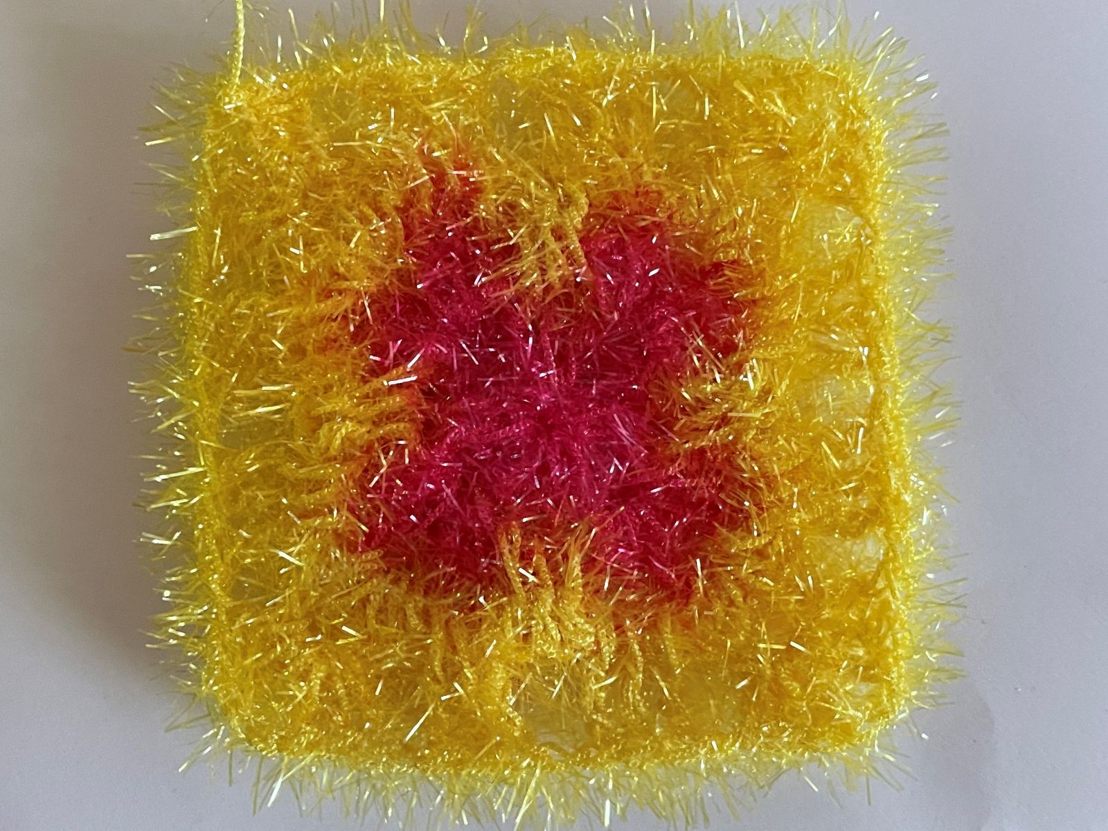 8. Nun nur noch den Faden abschneiden und durchziehen und alle Fäden vernähen; anschließend Dein Quadrat noch etwas in Form ziehen