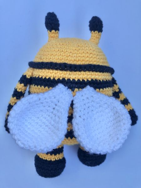 Ich hoffe die Anleitung hat dir Spaß gemacht und du freust dich über das Ergebnis. Solltest du Fragen oder Anmerkungen haben, schreib mich gern an. Auch über ein Bild deiner fertigen Biene würde ich mich sehr freuen.