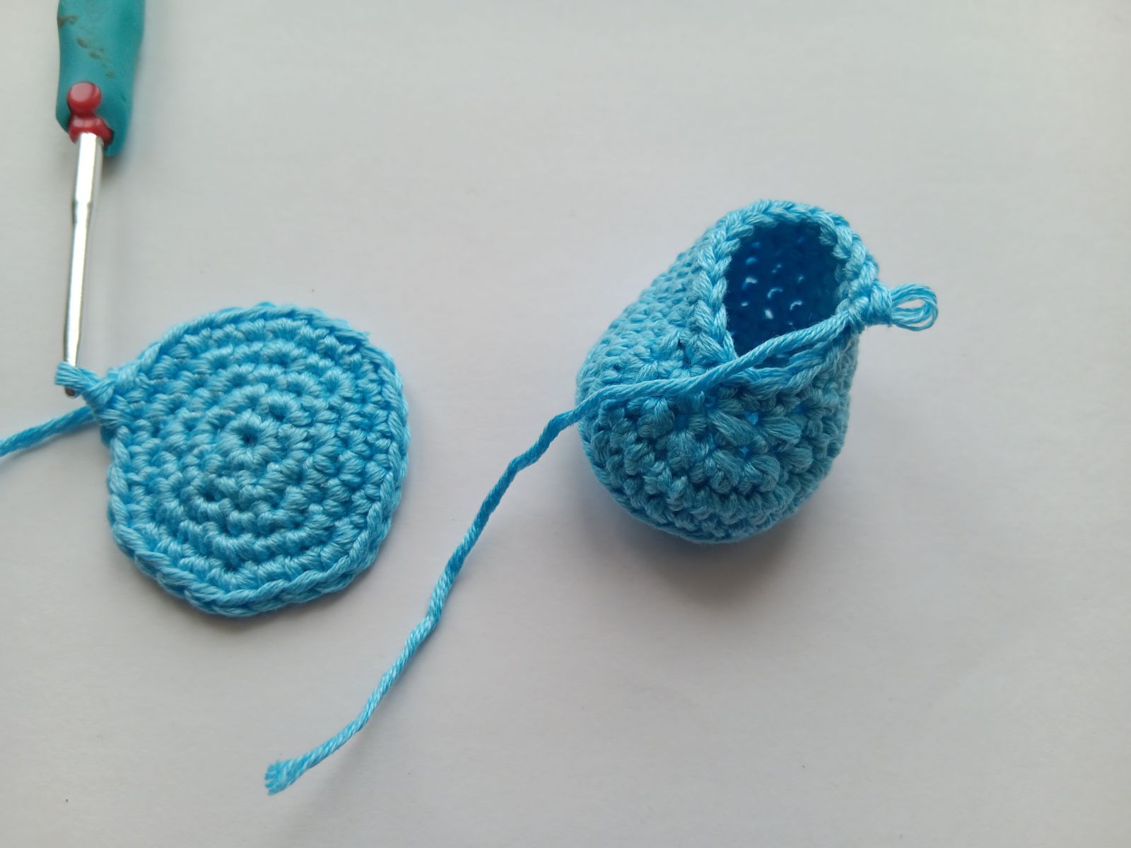 Abketten. Die Sohle mit feste Maschen umhäkeln, ob es gewünscht ist.
