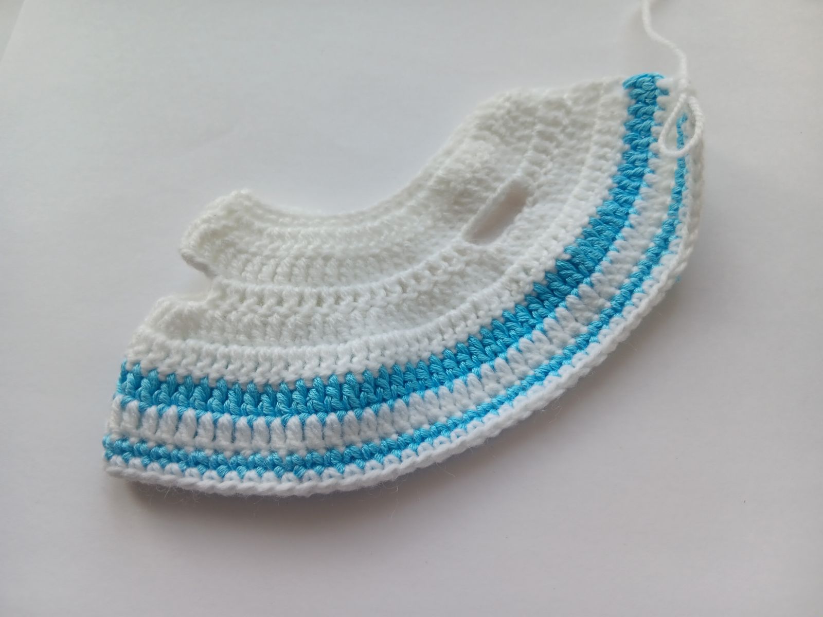 Das Kleidchen wird von oben nach unten ohne Nähte gehäkelt.