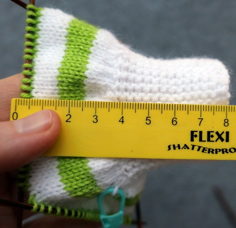Wenn unser gesamtes Kleid 8 cm in der Höhe hat, machen wir keine Zunahmen mehr.