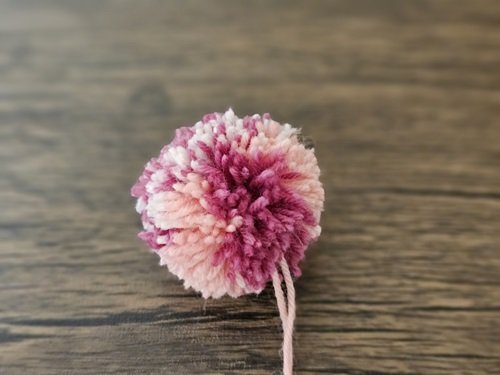 Stelle nun mit Hilfe des Bommelmakers einen Bommel her und nähe diesen auf der Mütze an.