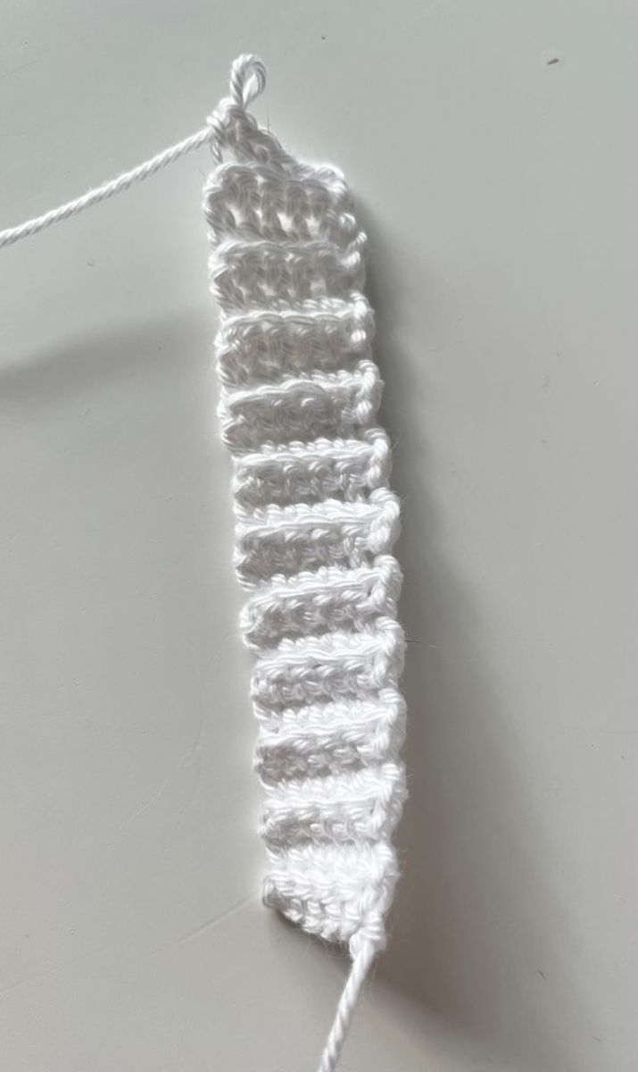 Runde 1 3 dstb, 4 stb, 1 dstb, 4 stb, 3 dstb, 2 lm, km in den mr (16)