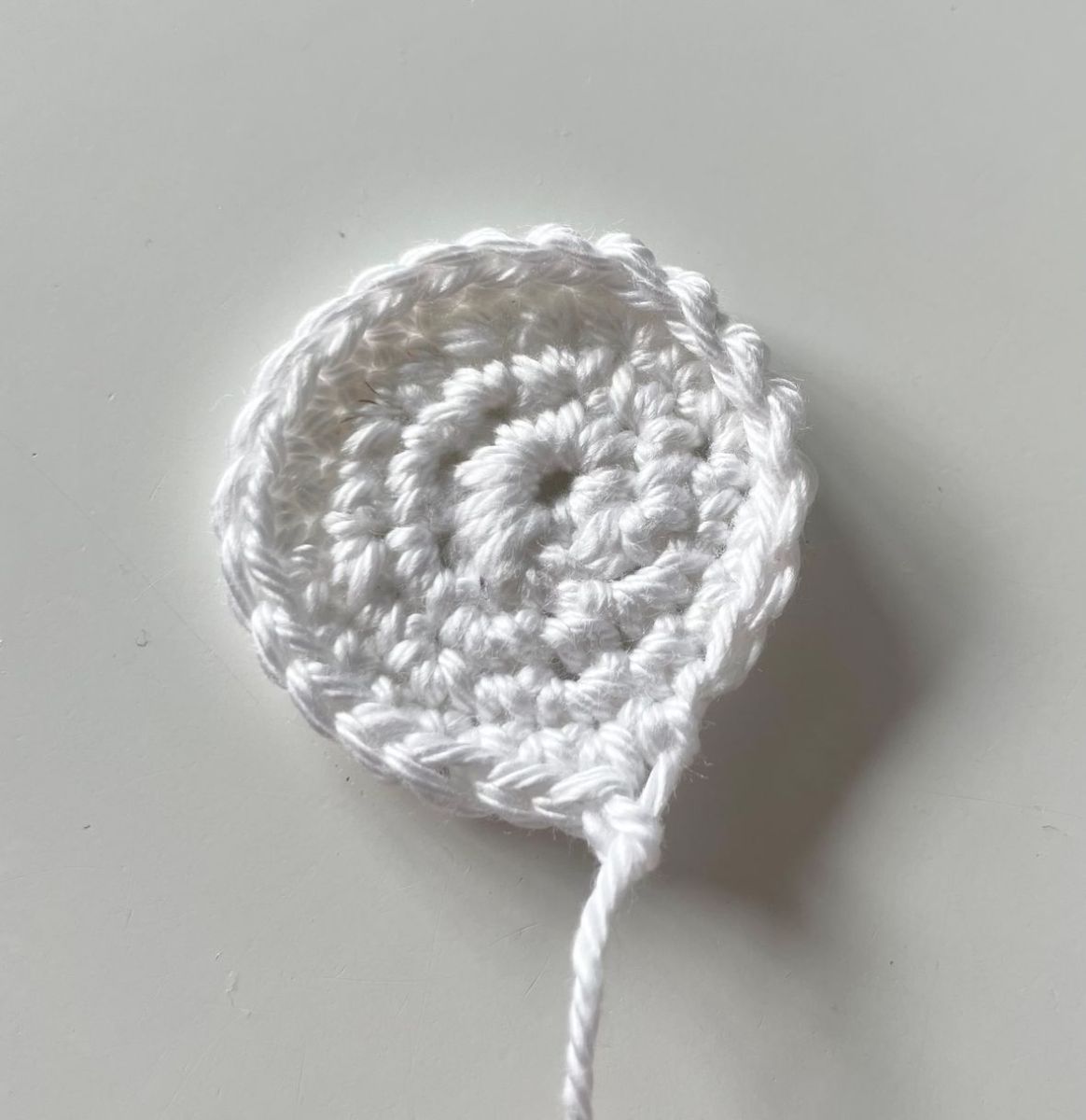 Es wird in Spiralrunden gehäkelt, die Runden werden nicht mit einer Kettmasche geschlossen. Es wird durchgehend in die Maschen der Vorrunde gehäkelt.
