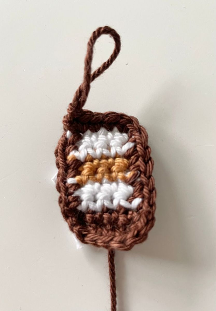 Vernähe Fäden während des Häkelns im Inneren der Figur, damit man diese später nicht sieht.