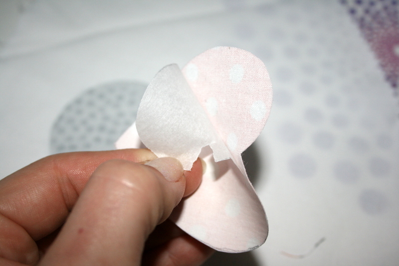 Zwischen den Rundungen des Herzens stichst du drei bis vier Stiche in die Form wie am Foto.