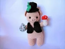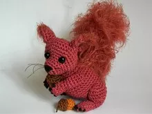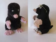 Und hier ein Häschen, das wie ein Kuscheltuch konstruiert ist. Der Körper wird hier nicht ausgestopft, sondern nur Kopf, Vorderpfoten und Hinterpfoten. Durch Verwendung von dreierlei Garn erhält das Tier eine für das Baby interessante Struktur, so dass das Kind zum Fühlen und Betasten angeregt wird. Die Augen sind gestickt.