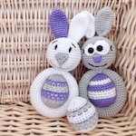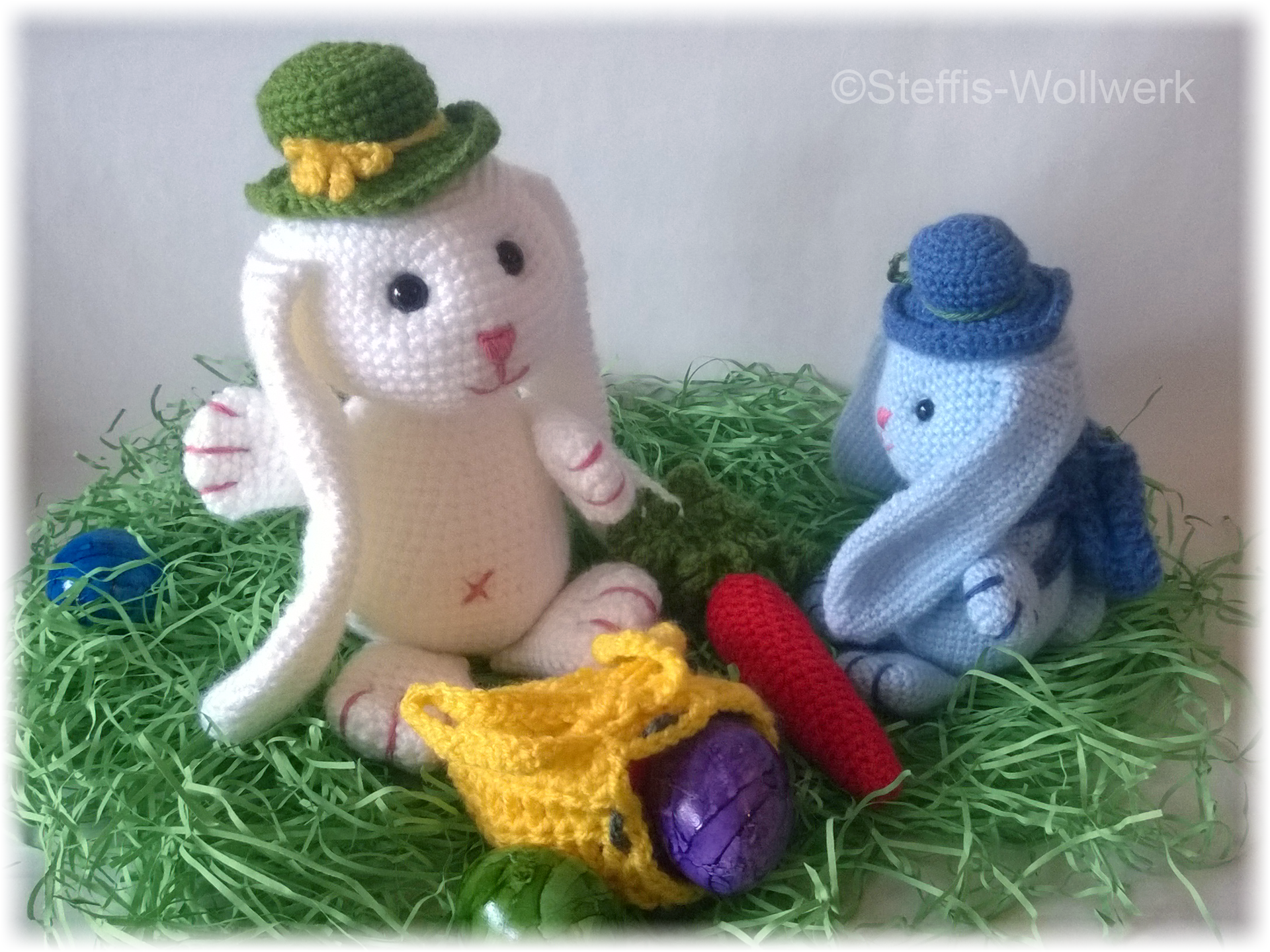 Babys erstes Kuscheltier kann der Hase Hoppel sein! Er wird sicher heiß geliebt, wurde er doch von Mama der Oma mit viel Liebe und Herzblut gehäkelt. Er wird aus 3 verschiedenen Garnen gehäkelt (Samtgarn, Baumwolle, Kuschelwolle,). Der Körper wird nicht gestopft, damit Baby ihn besser greifen kann.