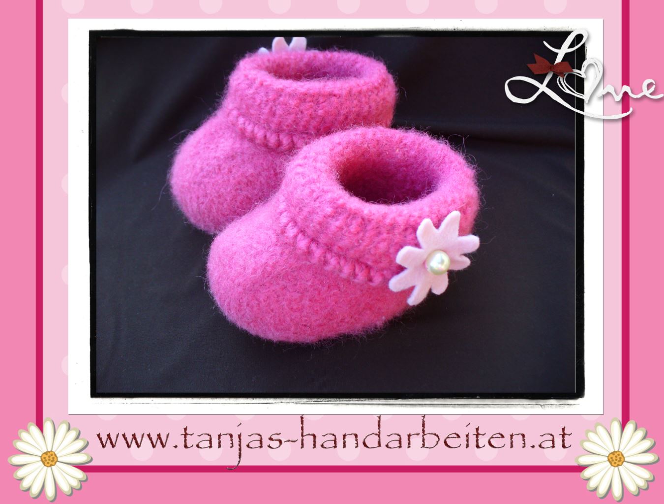 am wärmsten Babyschuhe: gestrickt und in der Waschmaschine gefilzt.