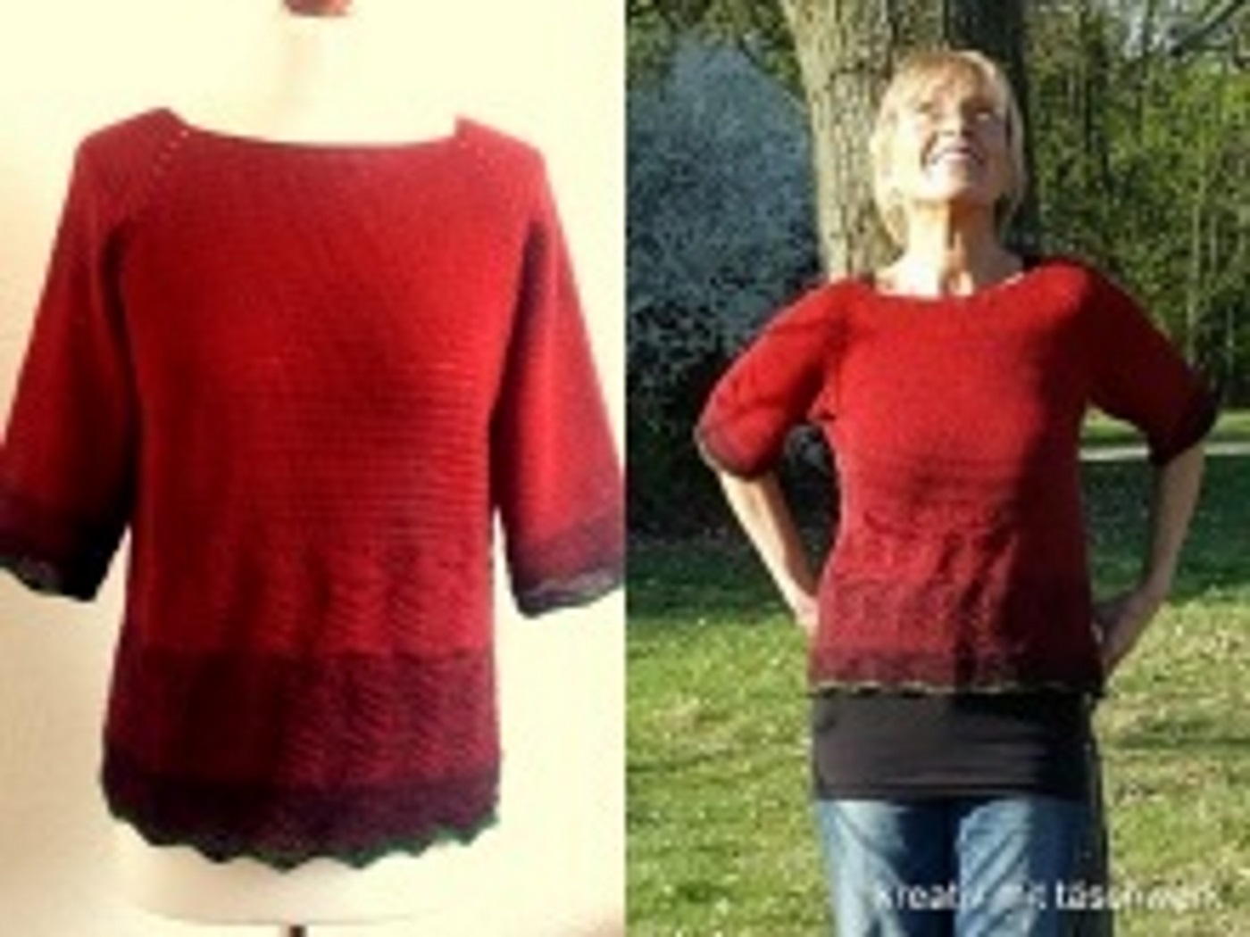 Der Pullover wird in Runden von oben nach unten gehäkelt.Er lässt sich sehr leicht auf alle Größen anpassen.