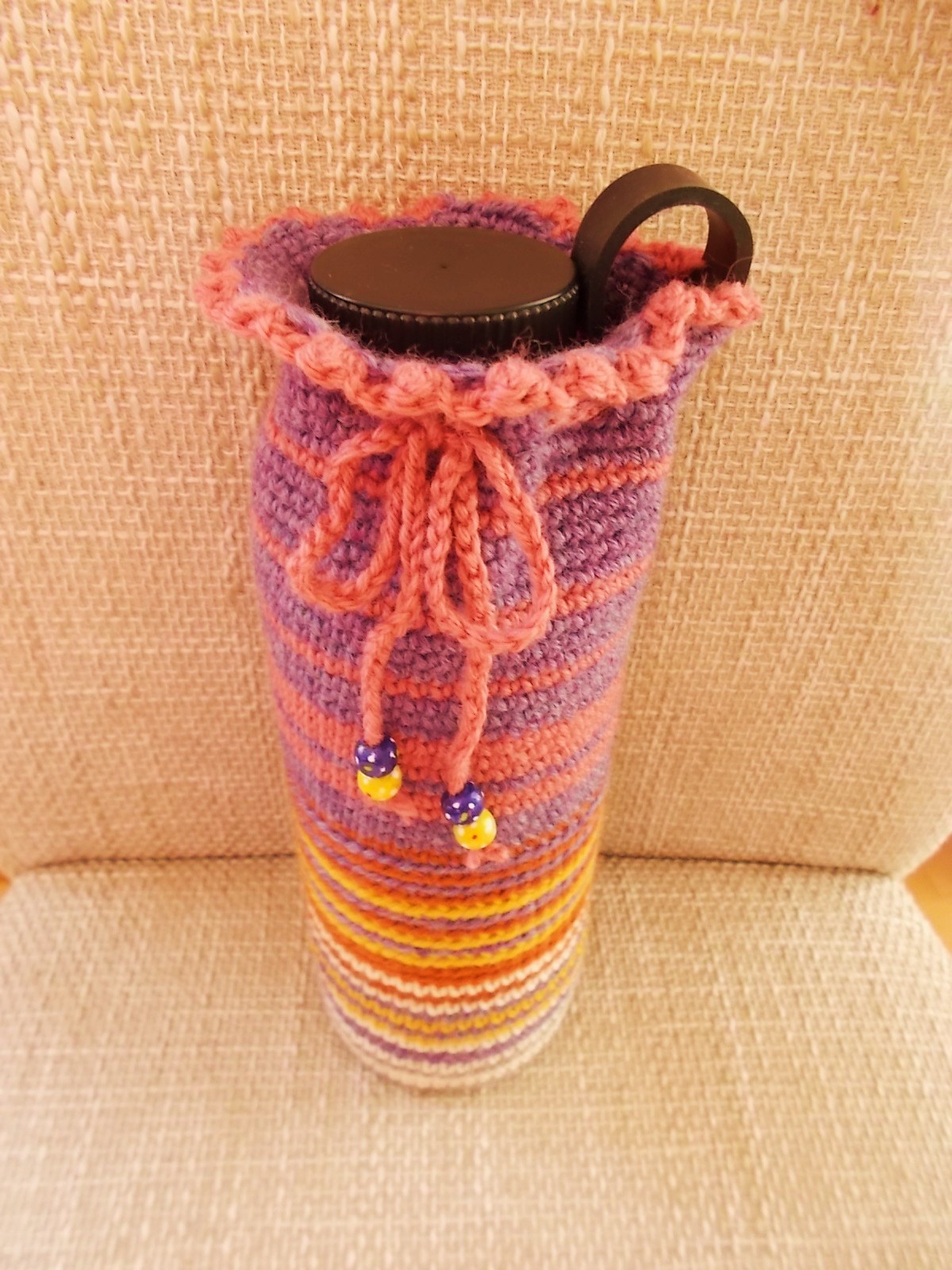 Aaaaaber ... ich hab heute ein Ufo fertig gehäkelt ... tataaa ... hier ist jetzt der Mantel für meine Thermosflasche. Das sieht besser aus als ich dachte. Dabei habe ich viele Reste verbraucht.