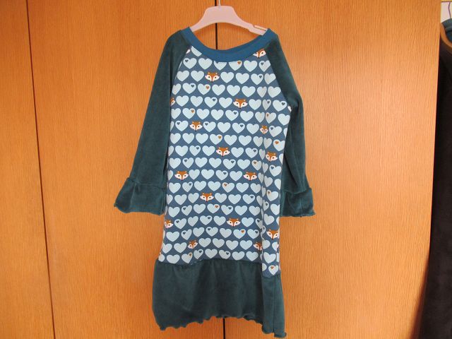 Glückwunsch auch zum fleißigen Heinzelmännchen für die zahlreichen fertigen Februar-Projekte, die Puppen-Overalls + Mützen im Geschwisterlook. Für so eine süße Idee gibts natürlich auch extra Punkte. Auch für das Lieblingskleid der Enkelin, das Du nochmal eine Nummer größer genäht hat, gibts extra Punkte.