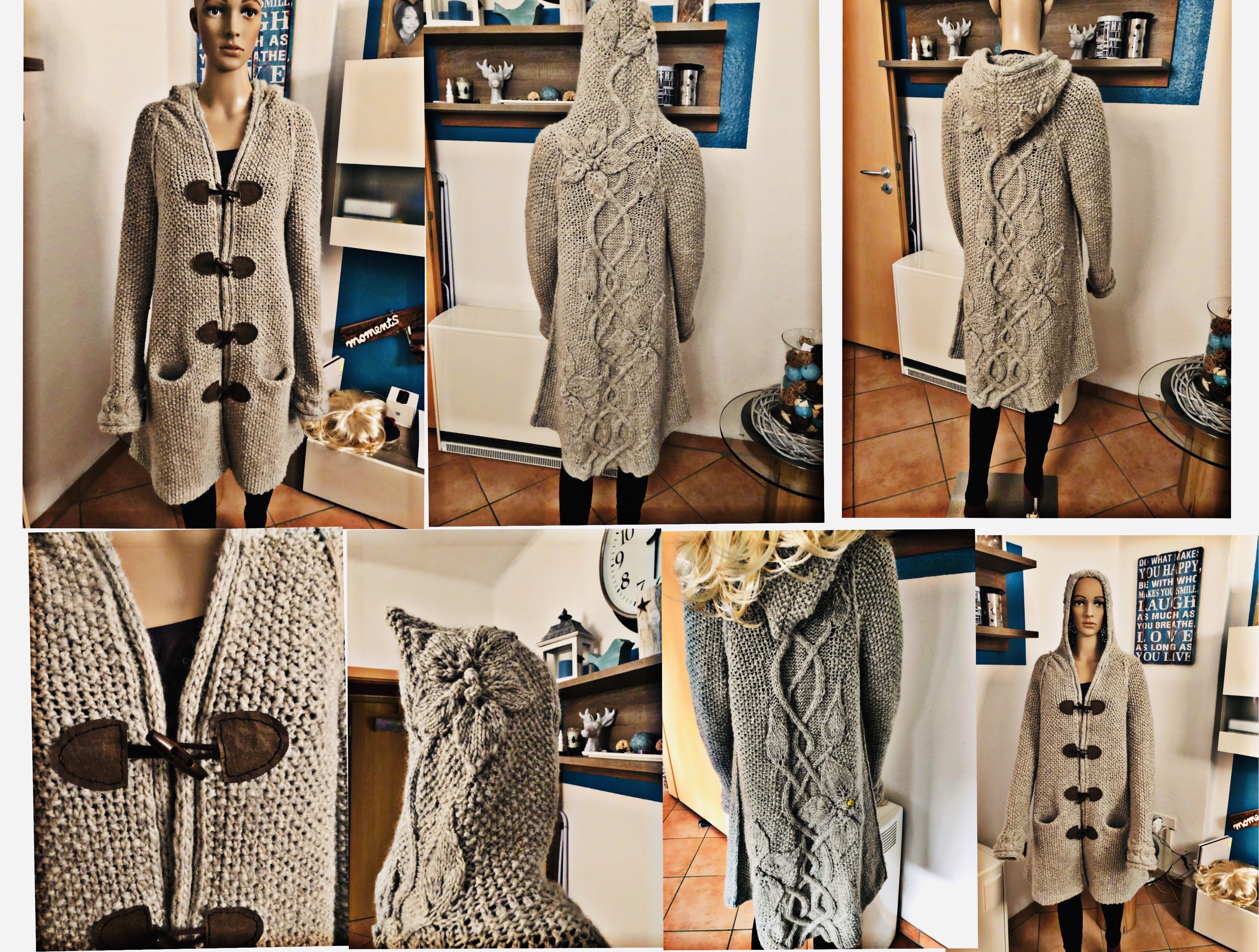 Gratulation zur Shopping-Queen für den Kauf von 800g Baumwoll-Chenille. Glückwunsch zum Titel fleißiges Heinzelmännchen für die Fertigstellung der Cutie Hippos und der dazu gehörigen Anleitung und natürlich für die Fertigstellung des Mantels. Dafür und fürs Streichen des Flures gibts auch extra Punkte.