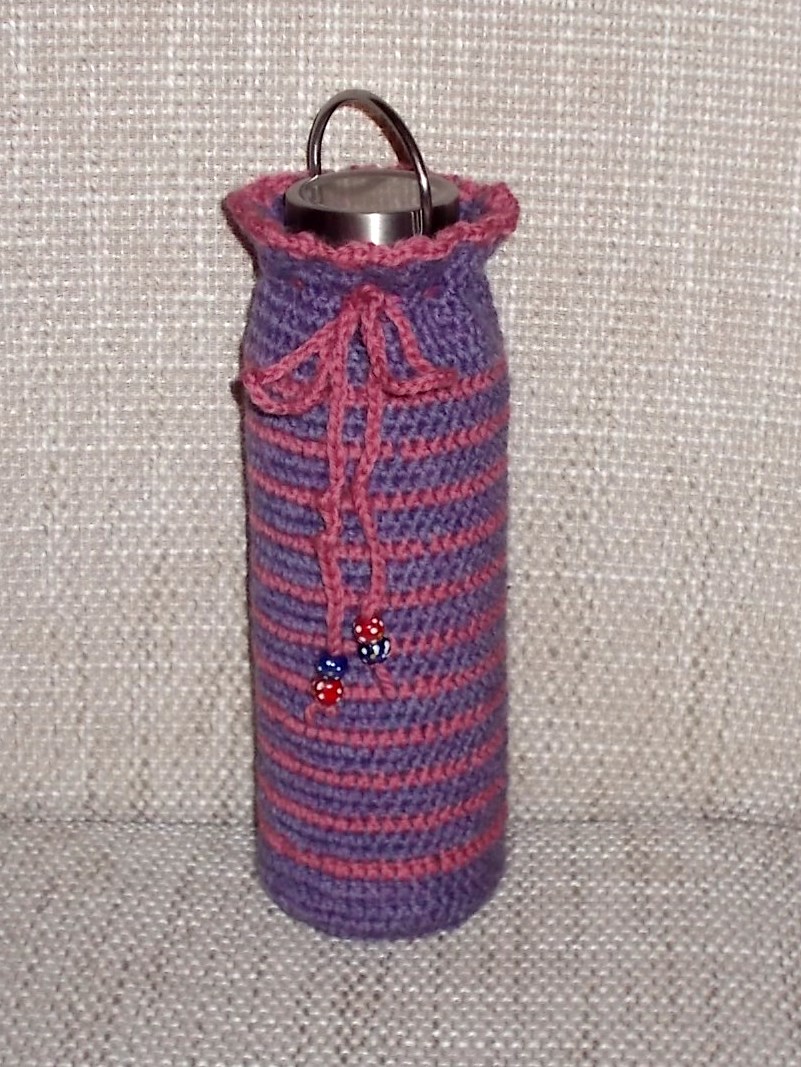 Glückwunsch zum Retten der widerspenstigen Wolle / zum Umhäkeln der Blumenvase mit widerspenstigem Bändchengarn.