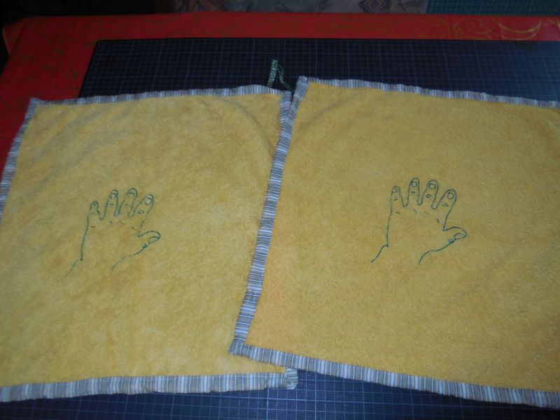 ich hab gestern Küchentücher für meine Enkeltochter genäht und bestickt