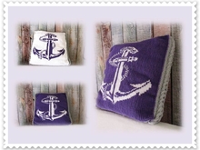 Hier wird ein Ankermotiv eingehäkelt und der Rand des Kissens setzt einen tollen Akzent durch das Zopfmuster.