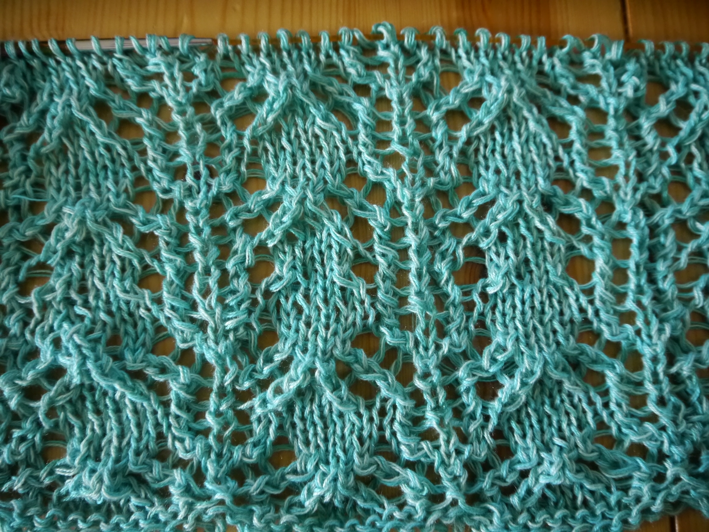 Das Muster ist einfach und geht schnell von der Hand. Beim Grundmuster wird nur in Luftmaschen-Bögen eingestochen, so kann man den Seelenwärmerschön nebenbei beim Fernsehen oder Kaffeeklatsch arbeiten.