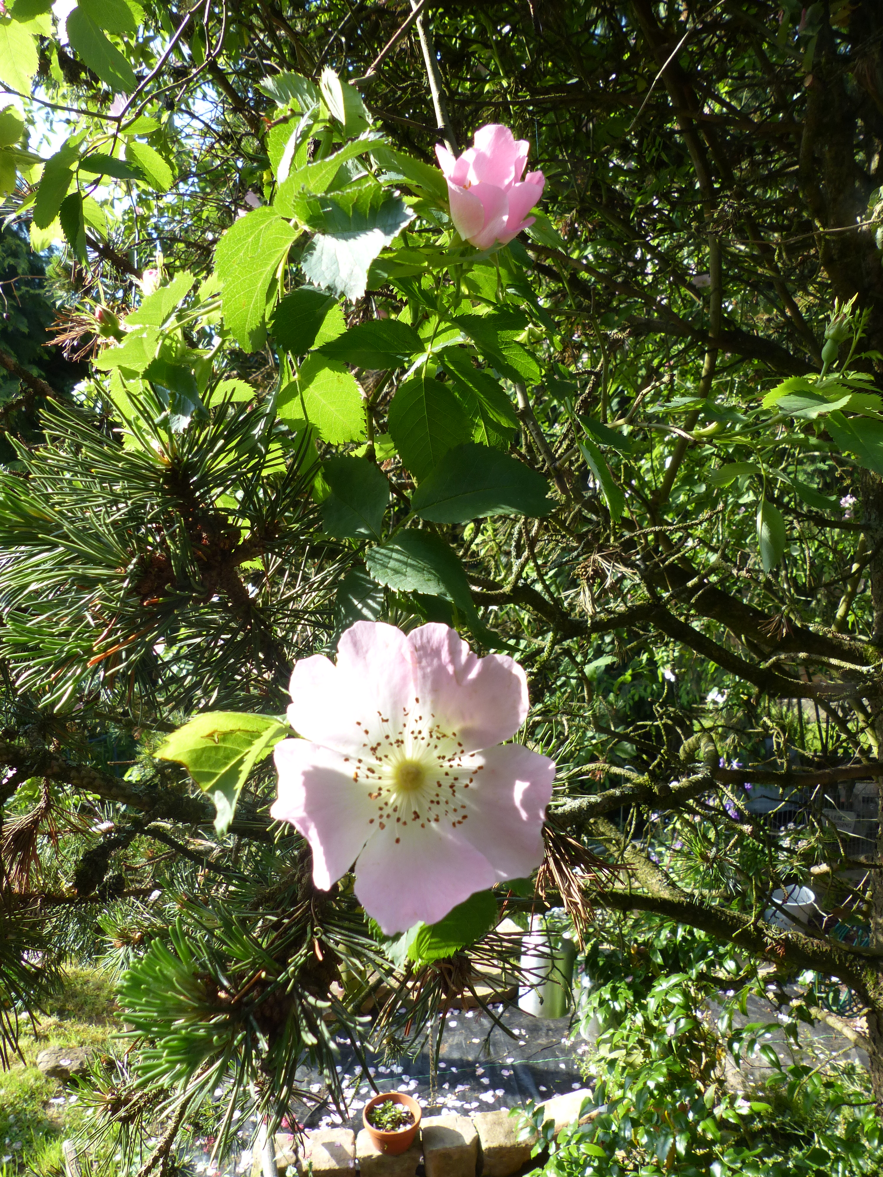 Bei uns scheint die Sonne und es wird bestimmt ein super toller Tag. Im Moment sitze ich noch auf dem Sofa und genieße den Blick aus dem Fenster auf meine Rosen im Baum.