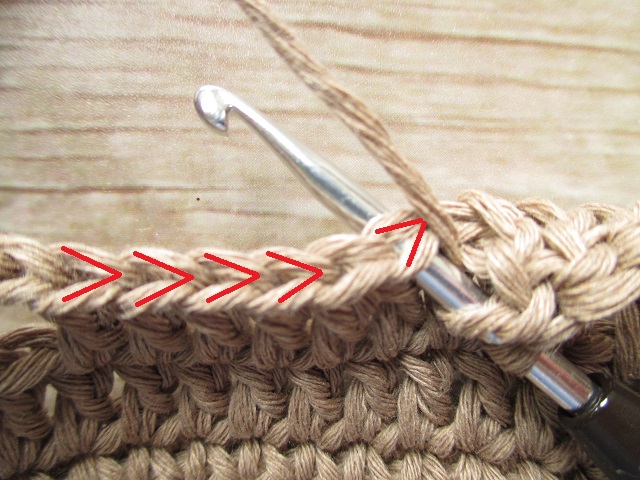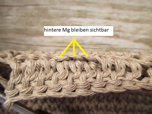 das bedeutet, dass das Stäbchen nicht in die volle Masche, sondern nur in die hintere Schlaufe gehäkelt wird.