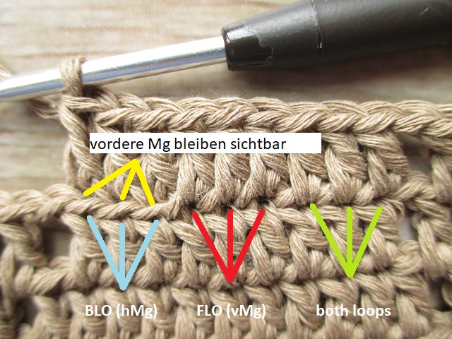 Ui, da hab ich ja auch wieder was dazu gelernt. Ich kenne das zwar mit dem Häkeln ins hintere oder vordere Maschenglied, aber die Abkürzung dafür ist mir neu.