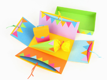 Passend zur Einschulung habe ich diese bunte Explosionsbox gebastelt.
