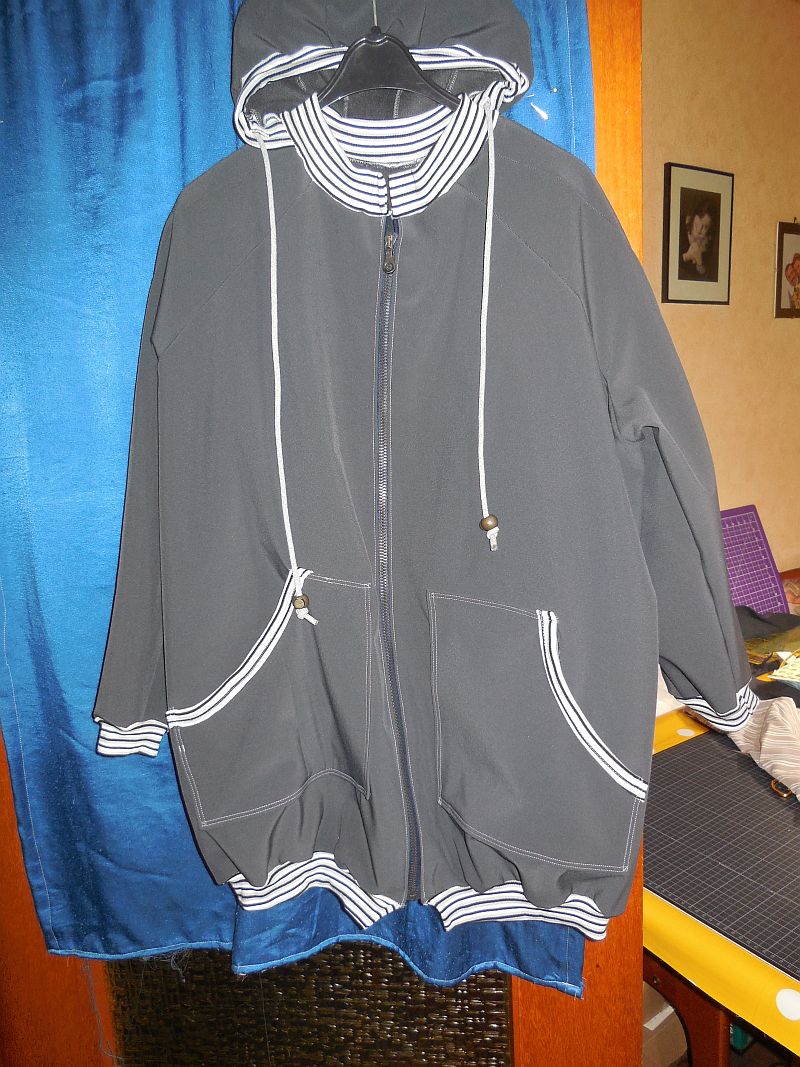 Softshell ist ein Wind und Wasserabweisendes Gewebe gut bei Schlechtwetter, oft noch im Doppelface mit Fleece innen gefüttert. mit dem sw gestreiftem ist für den jüngeren Enkel und das mit grau abgesetzt ist für den älteren Bruder, so könnens die Jacken gut unterscheiden