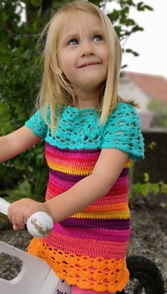 Hier darf ich euch drei meiner kunterbunten Modelle vorstellen, die schon beim Häkeln Spaß machen.