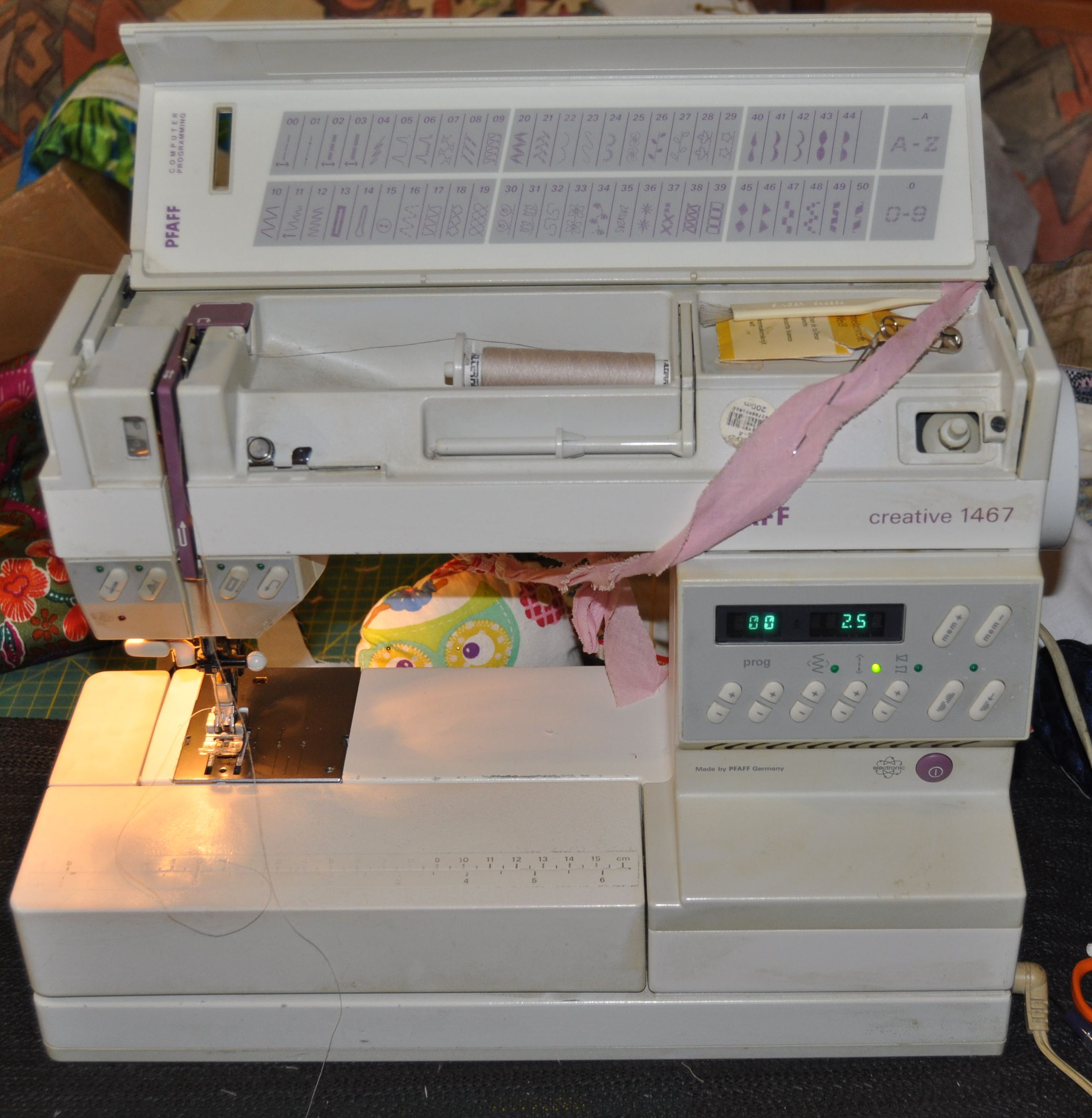 stellte gestern fest da<s ich von meiner großen Pfaff noch nichtmal ein Bild hatte, aber da ich heute eh nähe, hab ich gleich eines gemachtDer *drecksack* vorne nimmt alle Fäden und kleinere Abschnitte diebeim nähen so anfallen auf, so liegt auch nicht zuviel am Boden umnander-