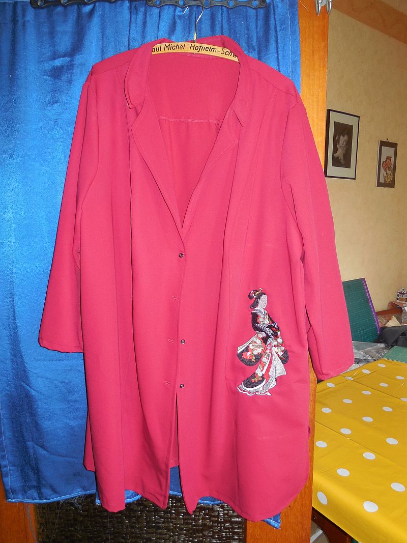 diese geisha stickte ich mir auf eine Blusenjacke, das Motiv ist auf miner Stickmaschone und stickt gute 4 1/2 Stunden bis es fertig ist