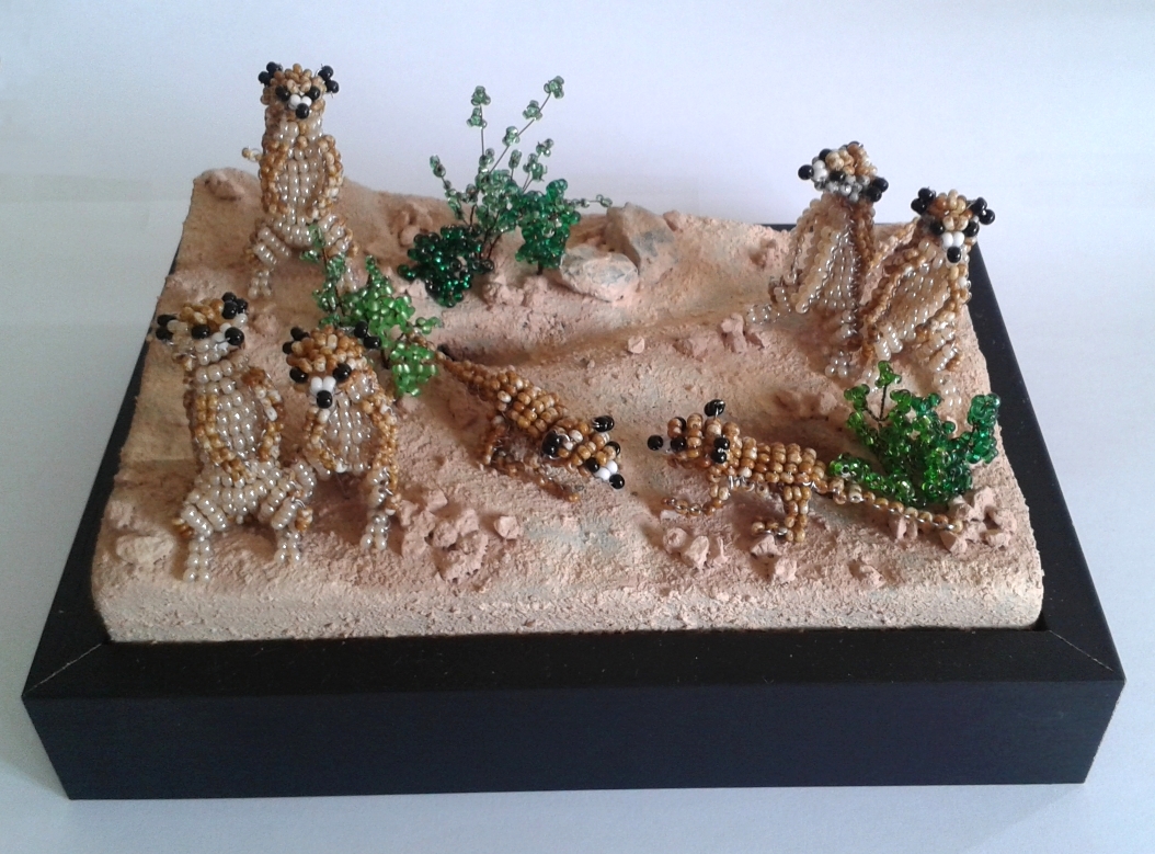 Und hier Bilderrahmen, Blumensteckschwämme für die Untergründe, Plüsch mit Acrylfarbe für das Gras und natürlich wieder Perlen und Draht *lach* für eine Afrika-Deko