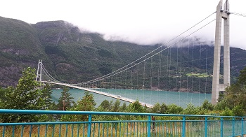 Über diese neue Hardangerbrücke (1380 m lang) sind wir gelaufen. Schon sehenswert, mit extra Fußgänger-Tunnel