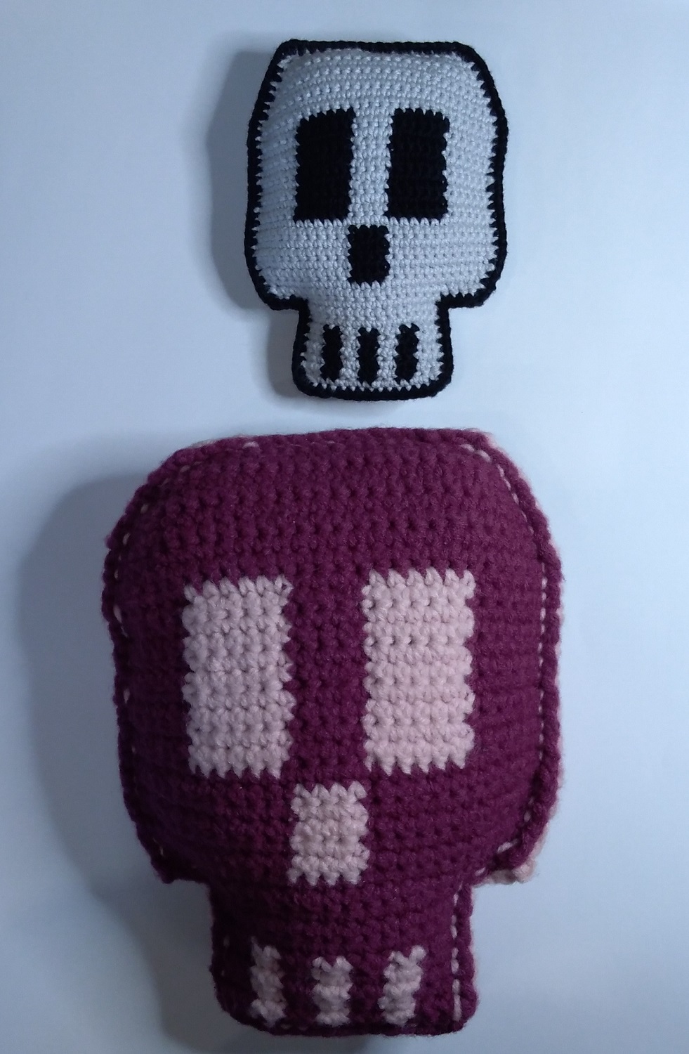 Beide Totenschädel sind etwa 12 cm groß und können nach derselben Anleitung gehäkelt werden.