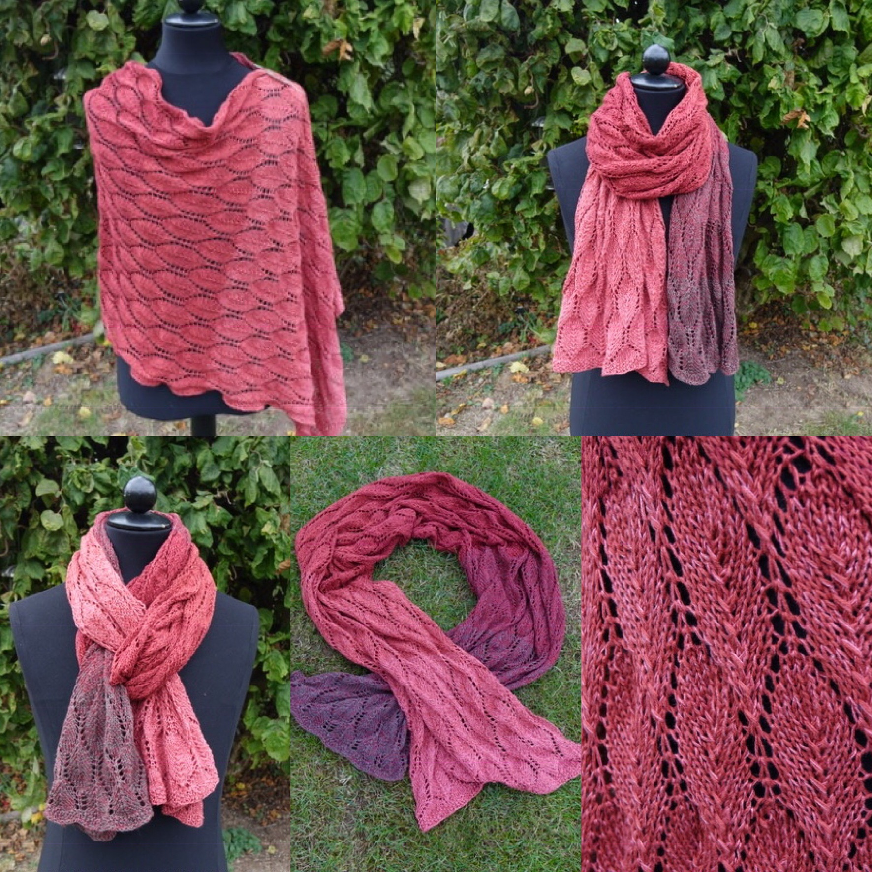 das aus einem sehr effektvollen Farbverlaufsgarn gehäkelt wurde: Moonlight von Bumbo. Dieses Garn enthält einen Metallfaden, der das gehäkelte Teil wunderschön schimmern lässt. (Leider kann man das auf dem Foto nicht so gut erkennen). 30 g davon genügen, um Hippy nachzuhäkeln.