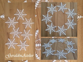 Dieses Jahr habe ich für die Weihnachten Schneeflockengemacht. Eine Schneeflocke hat einen Durchmesser von ca. 15 cm und sieht einem Sternchen