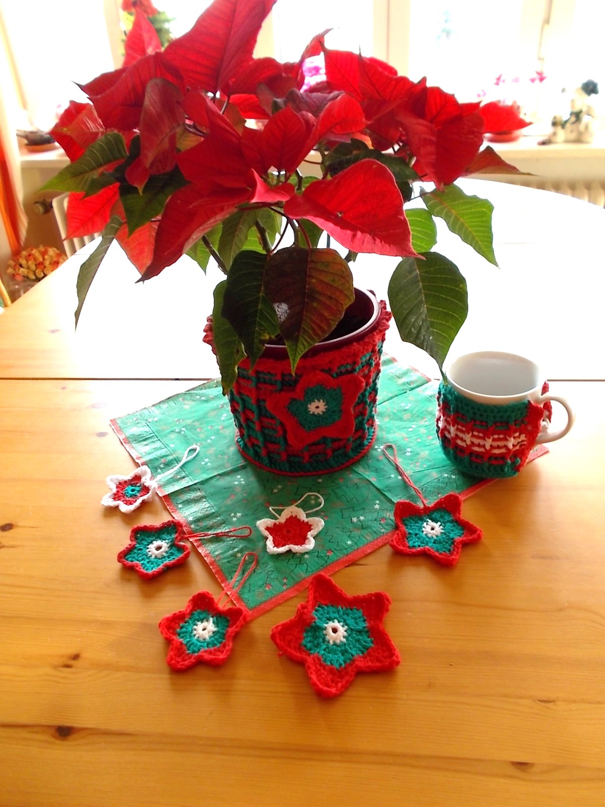 Eine ganz besondere und seltene Geschenkverpackung ist dieser Topfmantel für den Weihnachtsstern. So ist zumindest ein Teil des Geschenks aus der eigenen Weihnachtswerkstatt.