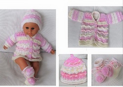 Die Jacke und die Mütze sind einfach zu stricken, wenn Strickerfahrung vorliegt. Wie wäre es, wenn du die kleine Puppenmutti (oder dich selbst) damit beschenkst?