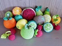 Ebenfalls kunterbunt ist der Obstkorb für den Kaufmannsladen und die Kinderküche. Verschiedenste Farben werden hierfür verwendet und erzeugen so ein realistisches Abbild der gesunden Vorbilder.
