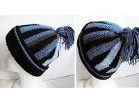 ->in 3 Größen für die ganze Familie: Vater, Mutter, Kind, wir stricken fortlaufend im Kreis immer rundherum immer das gleiche einfach zu strickende Muster, die Farben kommen direkt aus dem Wollknäuel, geht in einfarbig oder mit Farbverlauf