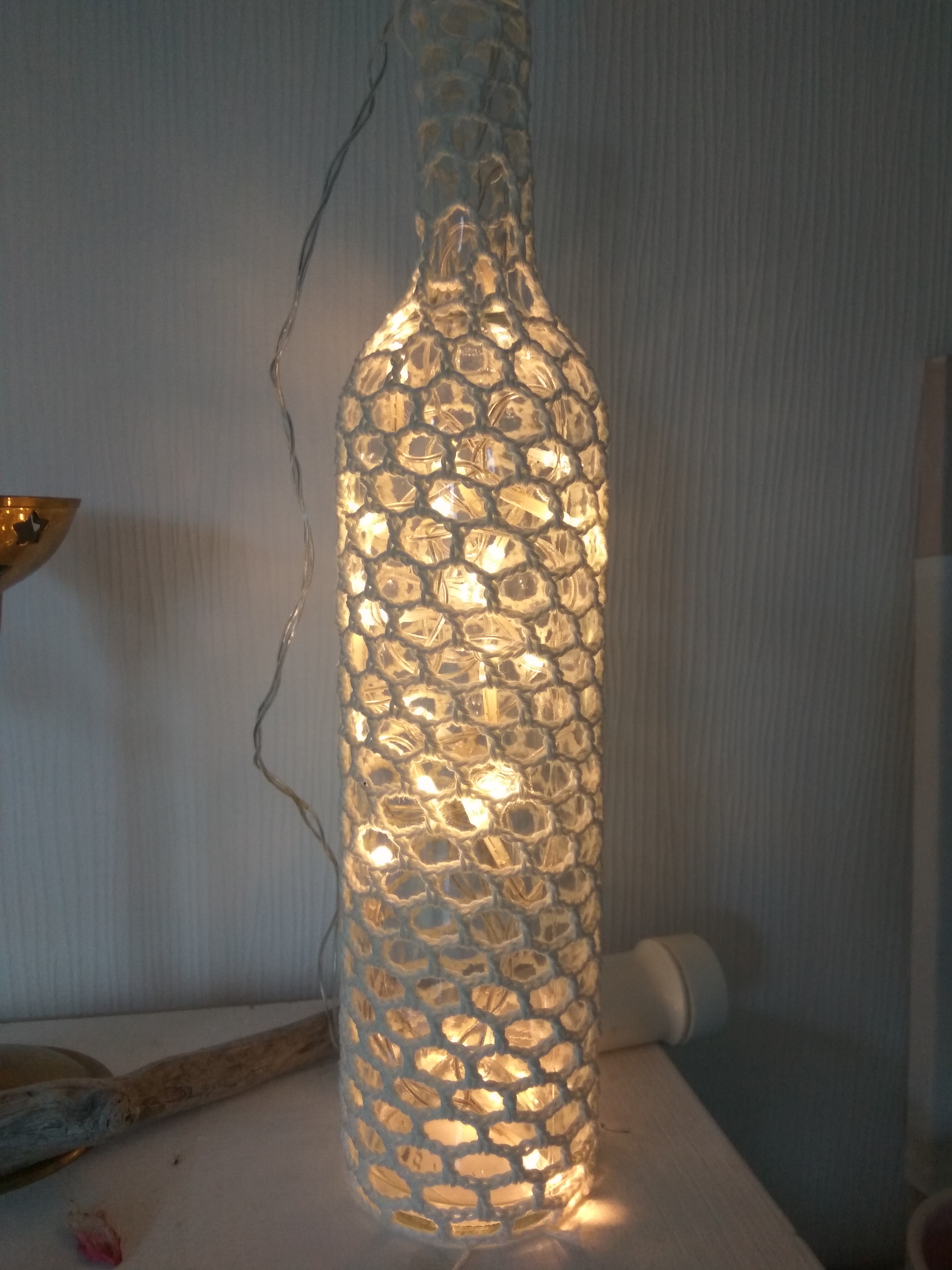 Claudia, das ist ja lustig mit dem Hut. Die Idee mit der umhäkelten Lichterkette finde ich ja mega toll. Das gefällt mir besser als wenn sie pur da hängen würde. Ich hab über meinem Schreibtisch übrigens ganzjährig eine bunte Lichterkette an einem Balken hängen, das sieht nicht nur zu Weihnachten gut aus.