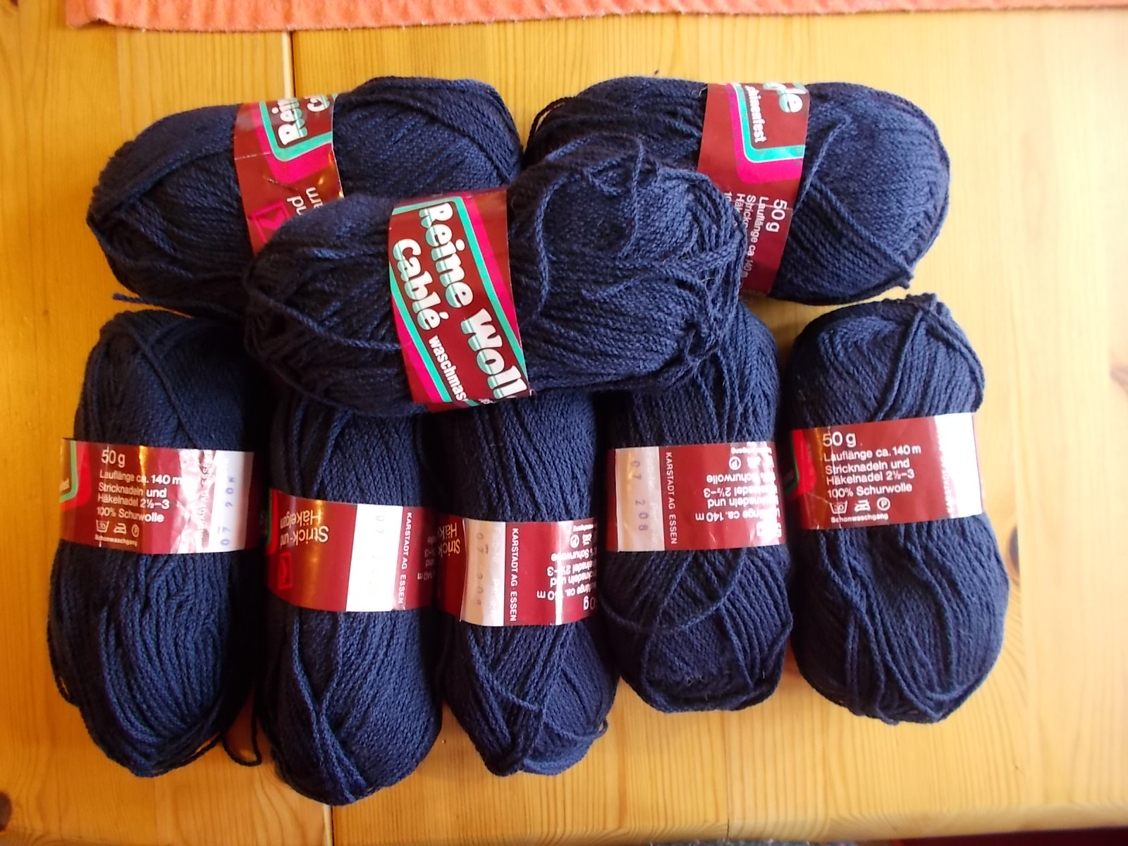 Heute ist meine restliche ertauschte Wolle übrigens gekommen. 8 Knäuel dunkelblaue 100%ige Wolle. Das Projekt dafür überleg ich mir noch. Ich werde es mit weißen und grauen Resten kombinieren. Wahrscheinlich werden sich wieder die beiden Enkelinnen freuen dürfen.