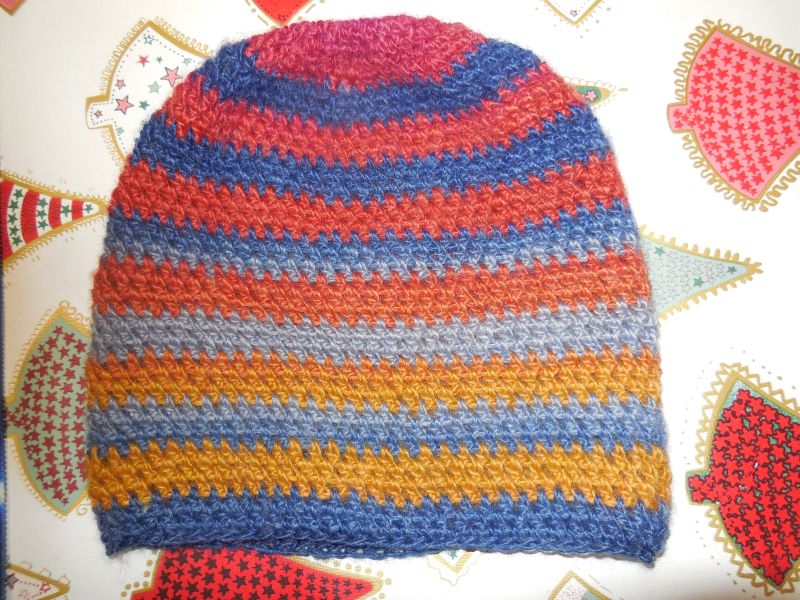 hab mir selber was gemacht, eine Baenie aus Resten von meinen Tüchern