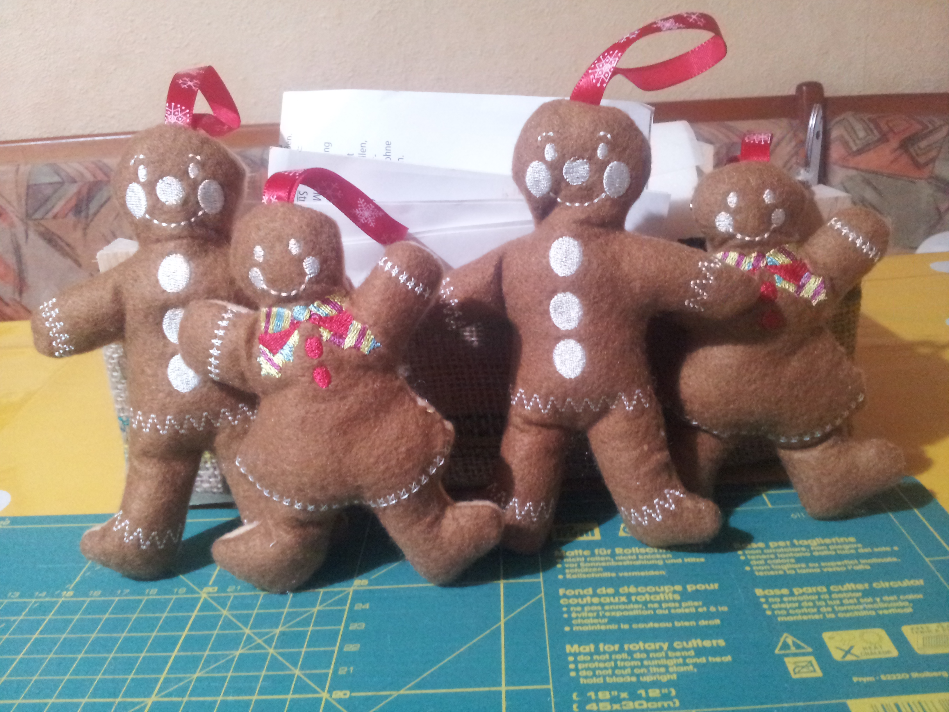 ich werde wenn mein Göga meinen Tisch fertig poliert hat morgen mein Nähzimmer so nach und nach einrichten und endlich meine Maschinen wieder stellen. Dann schauen ob alles funzt und die Sticki anwerfen, will noch einiges sticken wenns klappt. Brauch nochn paar Lebkuchenmanderl und Weiberl
