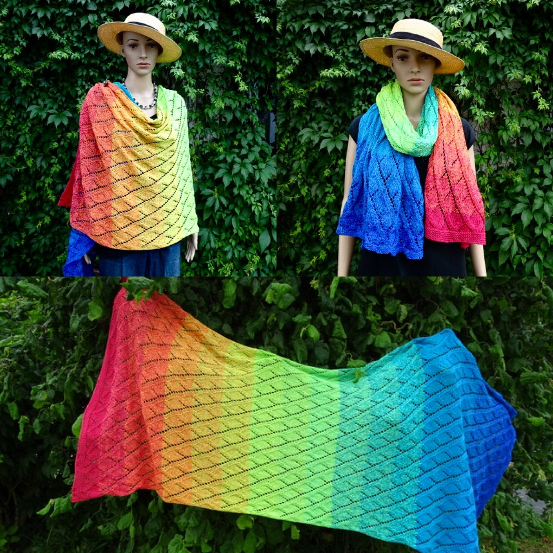 Er kann mit Farbverlaufswolle als auch mit normaler Sockenwollstärke gestrickt werden.