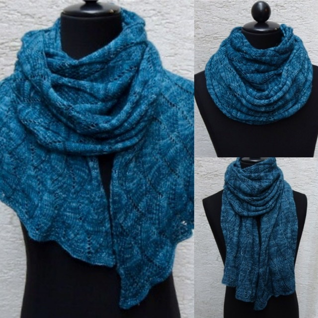 Mystic Arctika ist ein großer Kuschelschal oder auch Stola, der mit 300g Wolle mit einer LL von ca 400m auf 100g gestrickt wird.